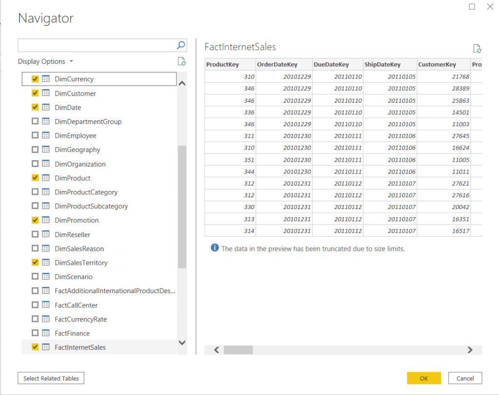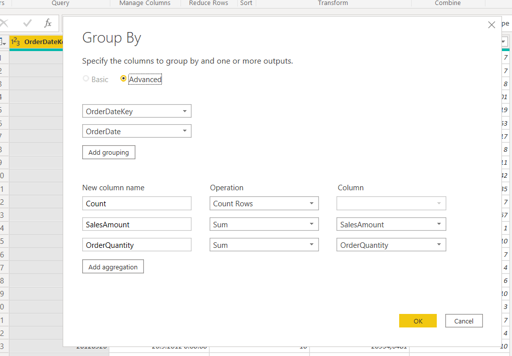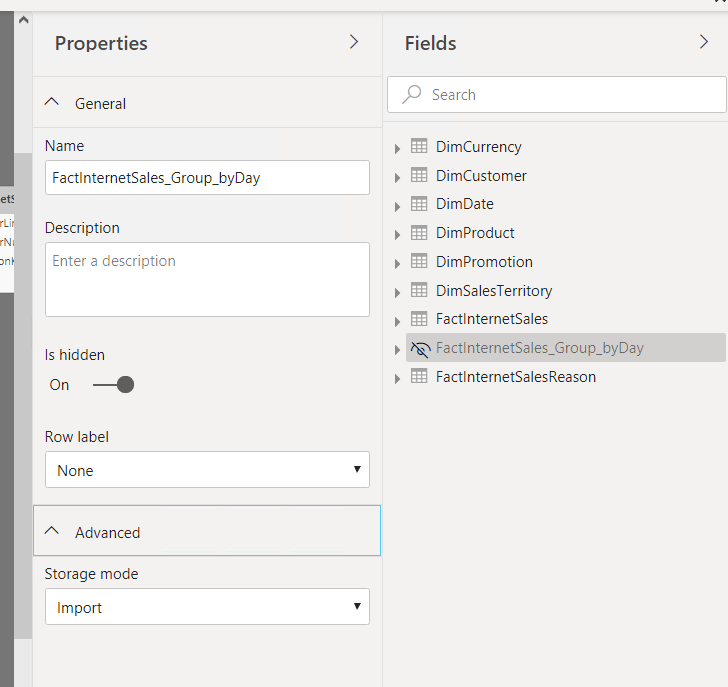 I have duplicated the FactInternetSales table query and grouped it by day (to make the aggregations table).