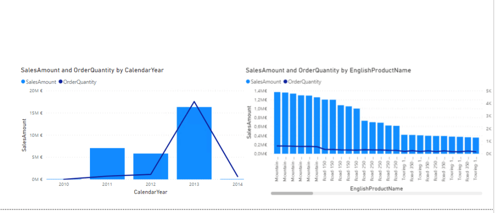 Similarly if you create another visual that is say SalesAmount by Product (or by any other dimension) you will reach an aggregate miss. I have created two such visuals: one that hits the aggregations, and another that does not hit current aggregations.