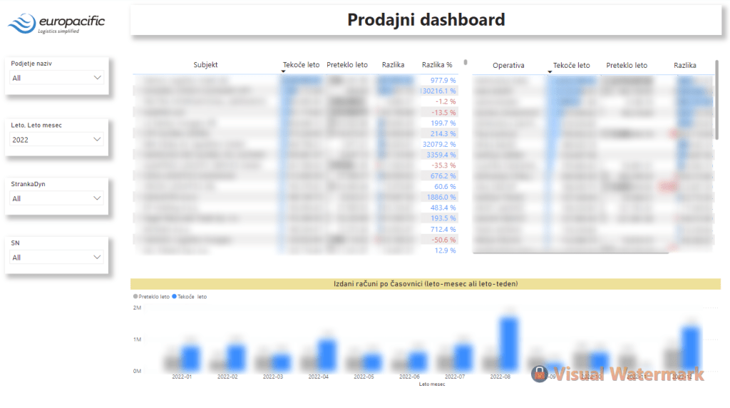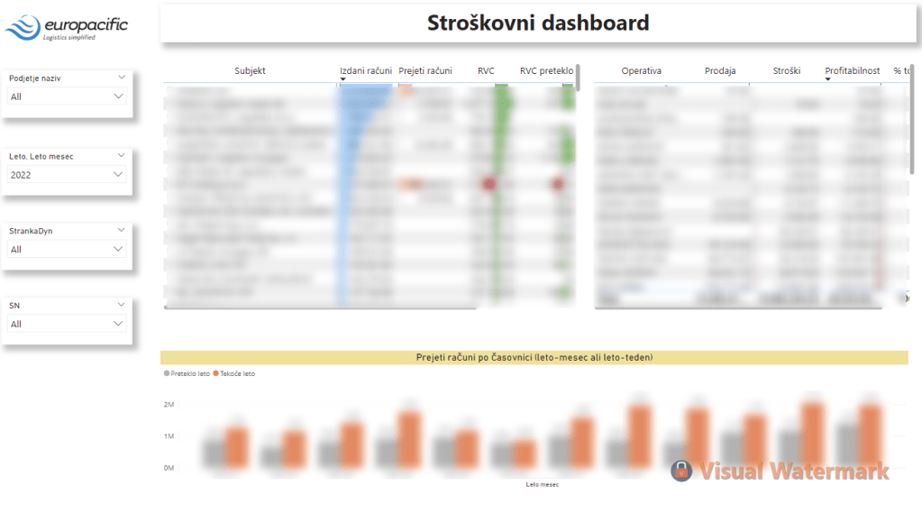 For a transport company client, the requirement was to create a few dashboards of Sales, Costs and Revenue, as well as to import and integrate data from the ERP system (Datalab Pantheon) and a few manual sources as well (excel, CSV).